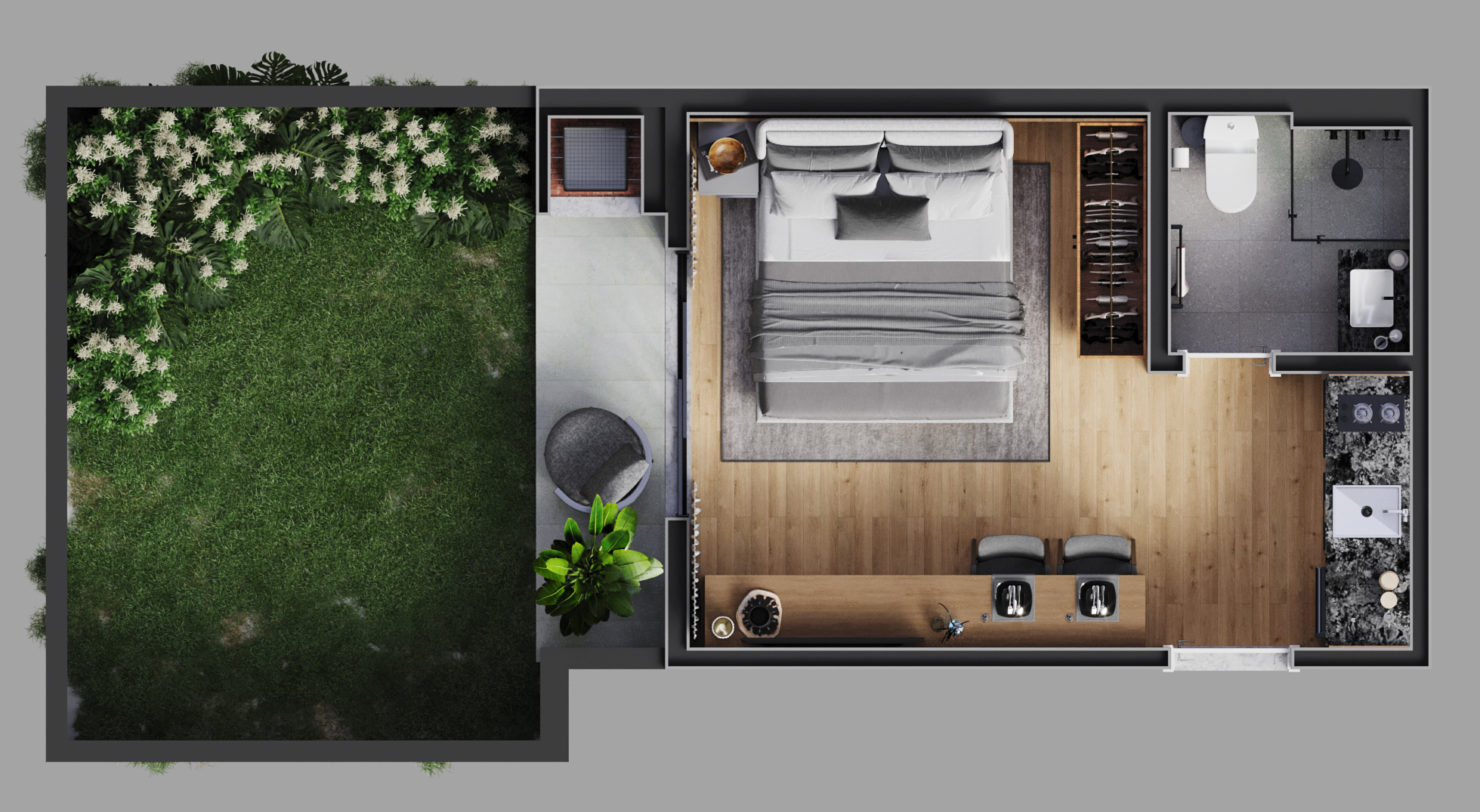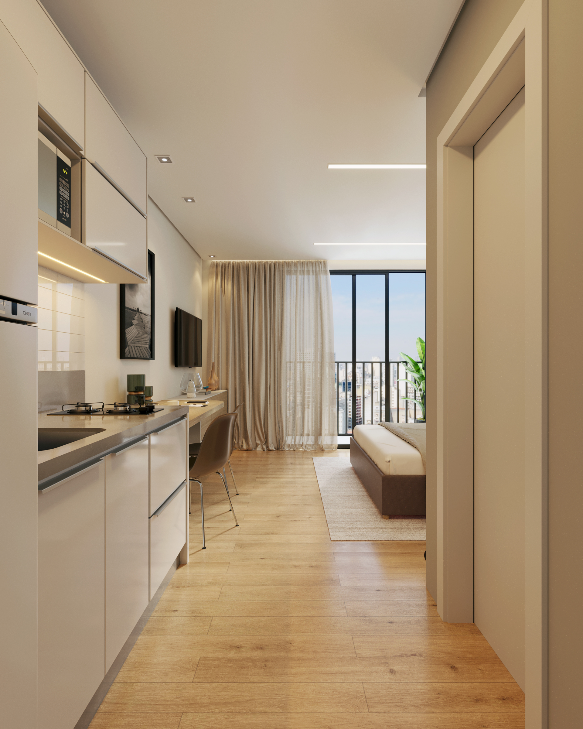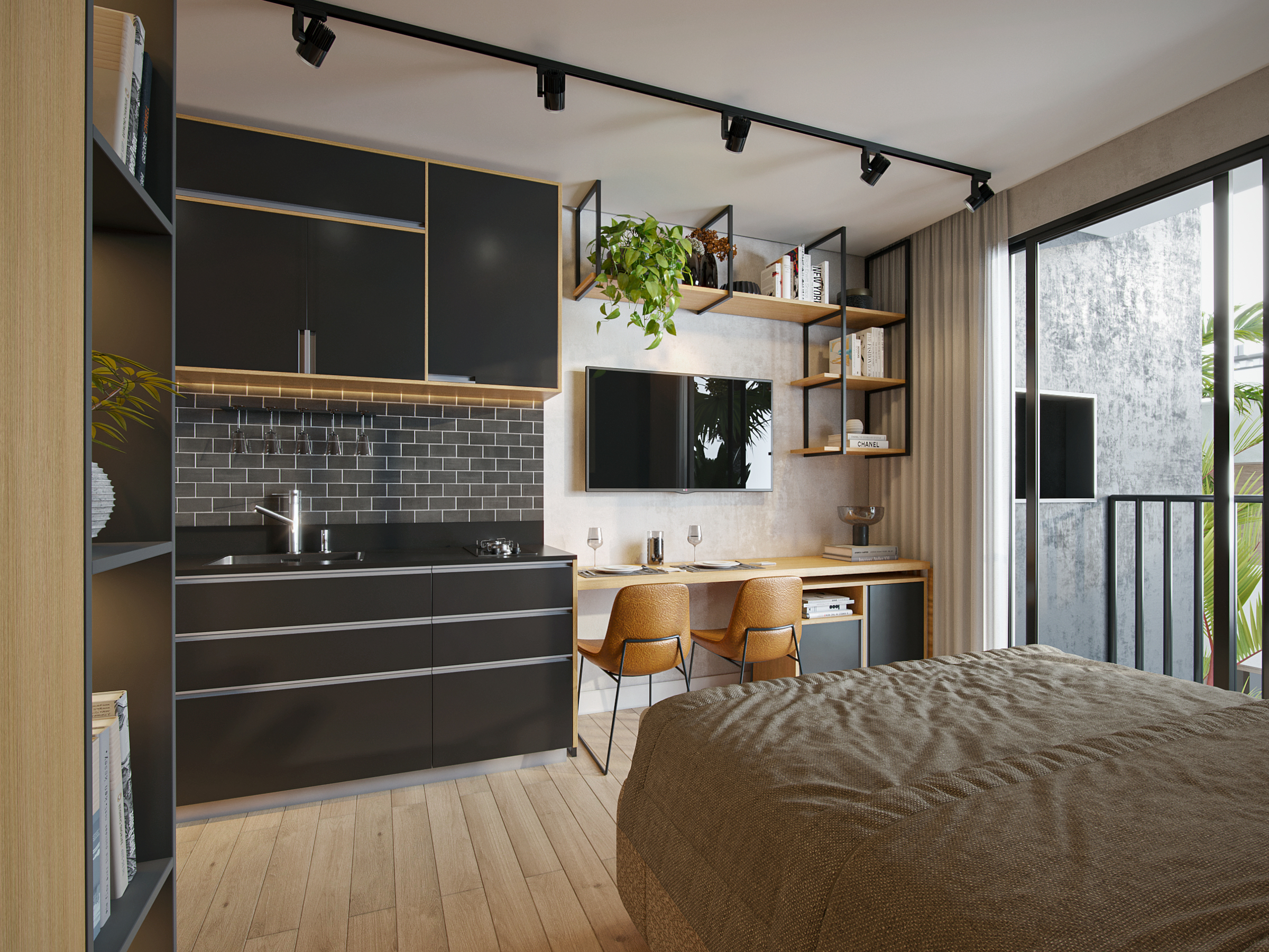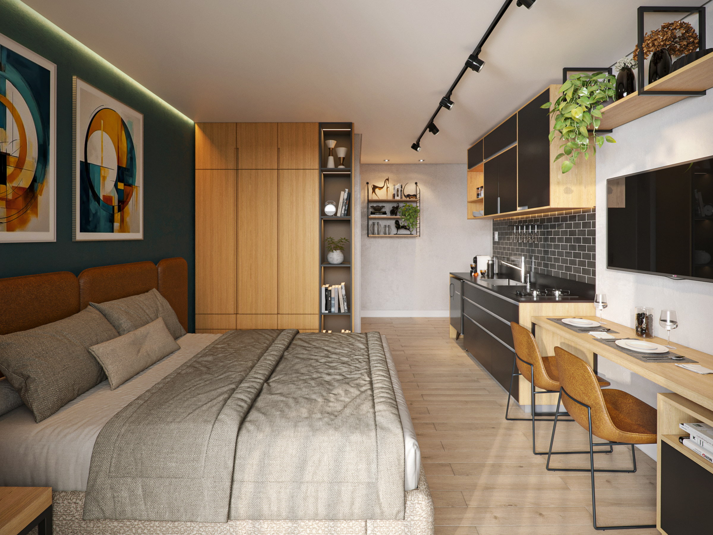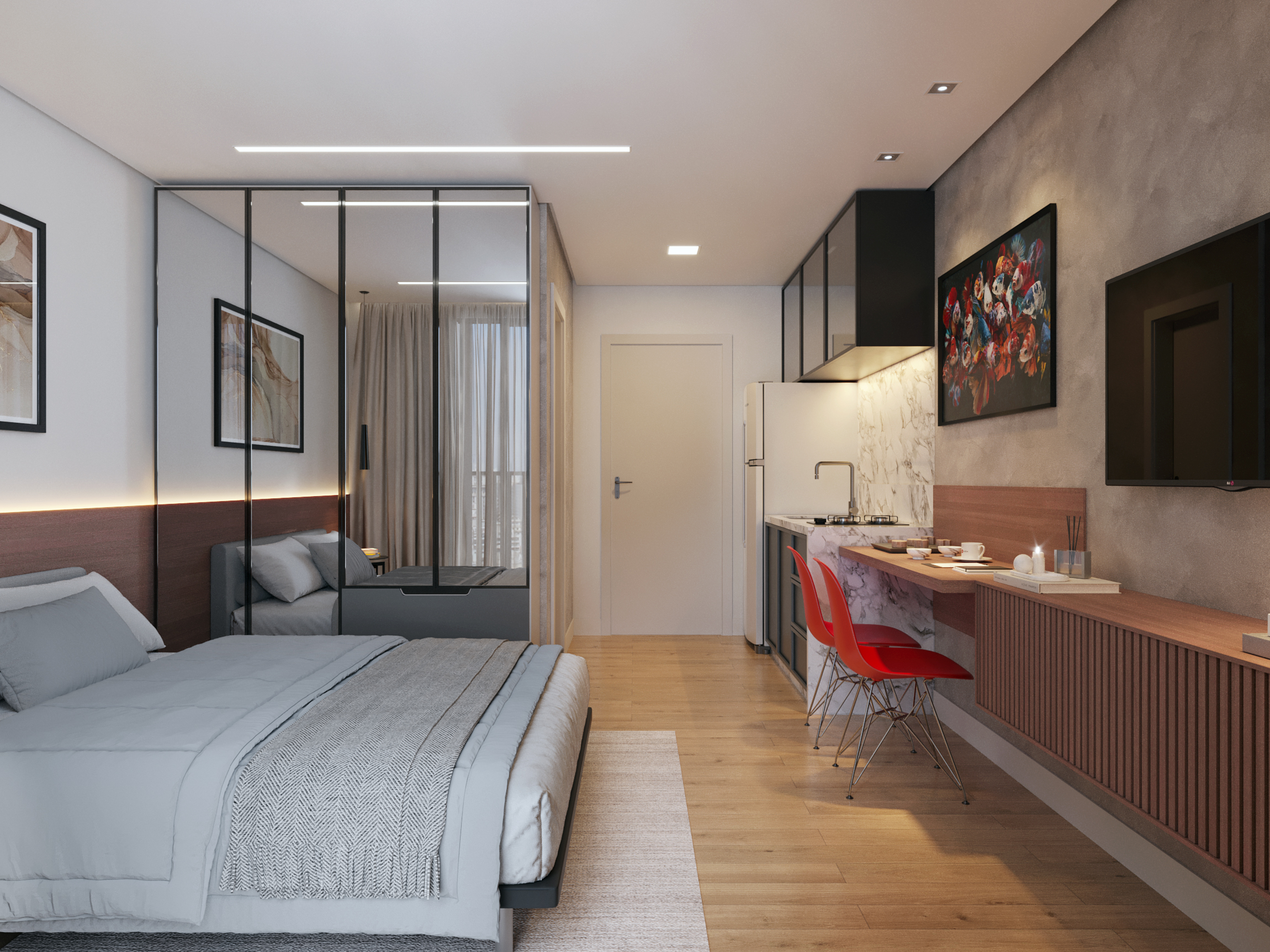 O projeto conta com 59 unidades, estrutura completa com plantas de 22 a 33m² bem distribuídos para o maior conforto dos hóspedes.