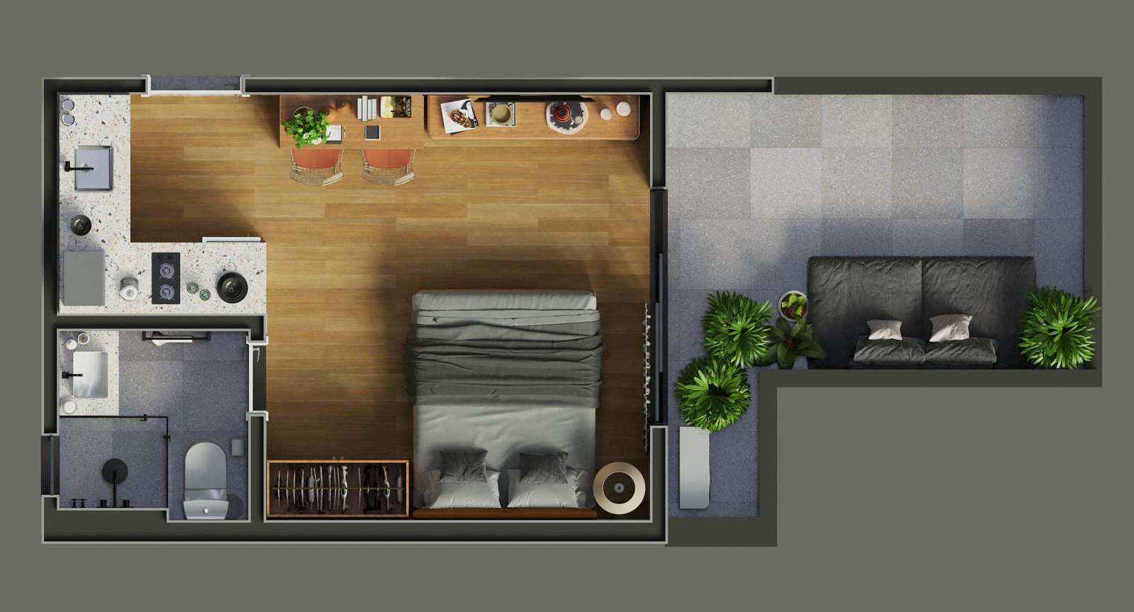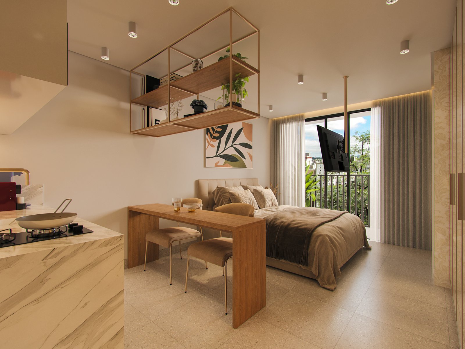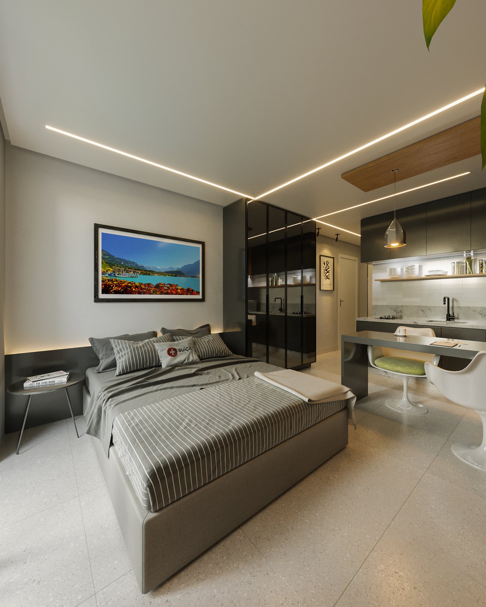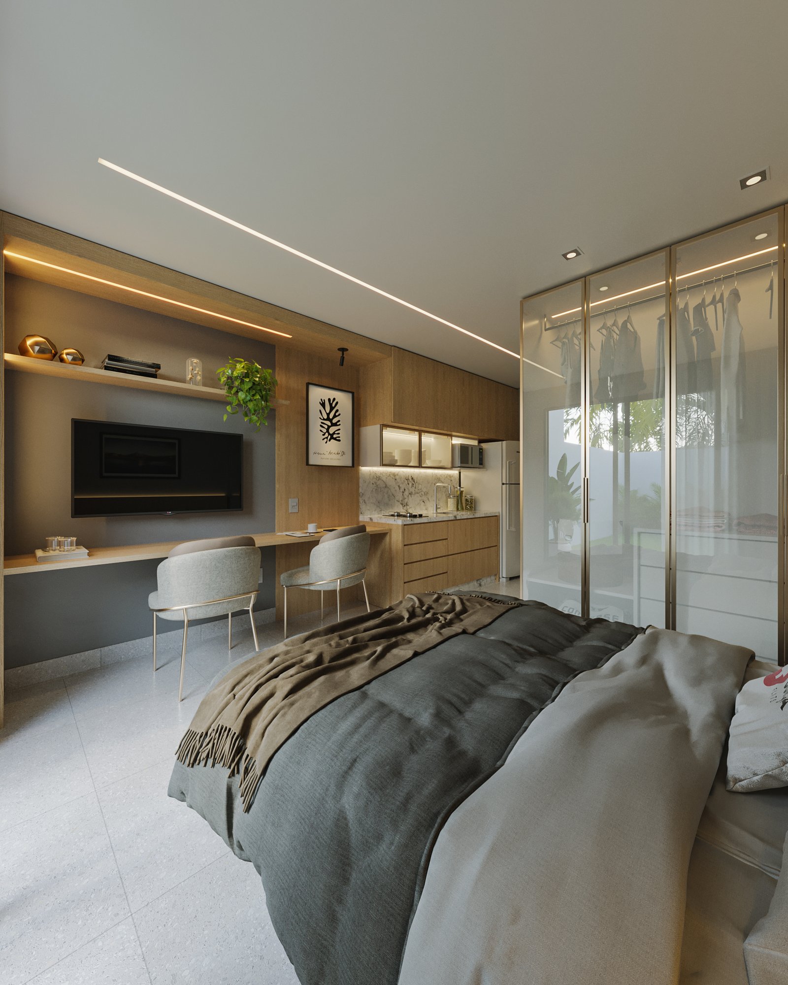 Composto por 59 unidades, conta com plantas de 22,57 a 27,16 m², todas com sacada. O empreendimento dispõe de uma estrutura completa, garantindo tudo o que seu hóspede precisa para uma estadia confortável e sofisticada.